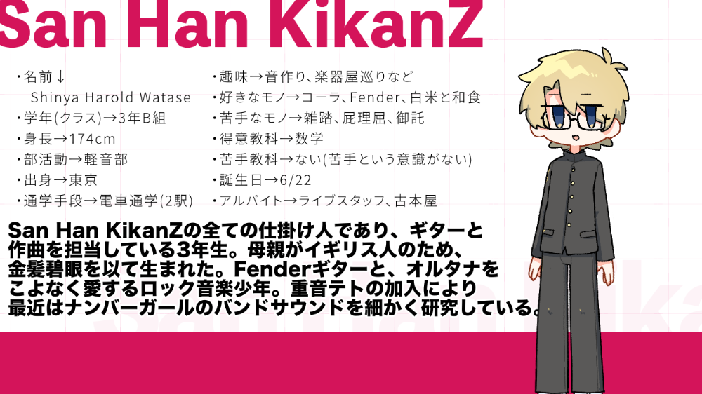 我らがSan Han KikanZのリーダー、渡瀬慎也です。彼の色んなことが書かれてますよ。