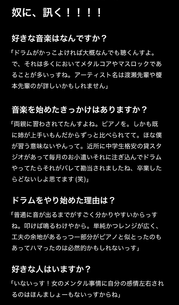 彼に対する質問コーナーも、数々の質問が舞い込んで来ました。ありがたい限りです。